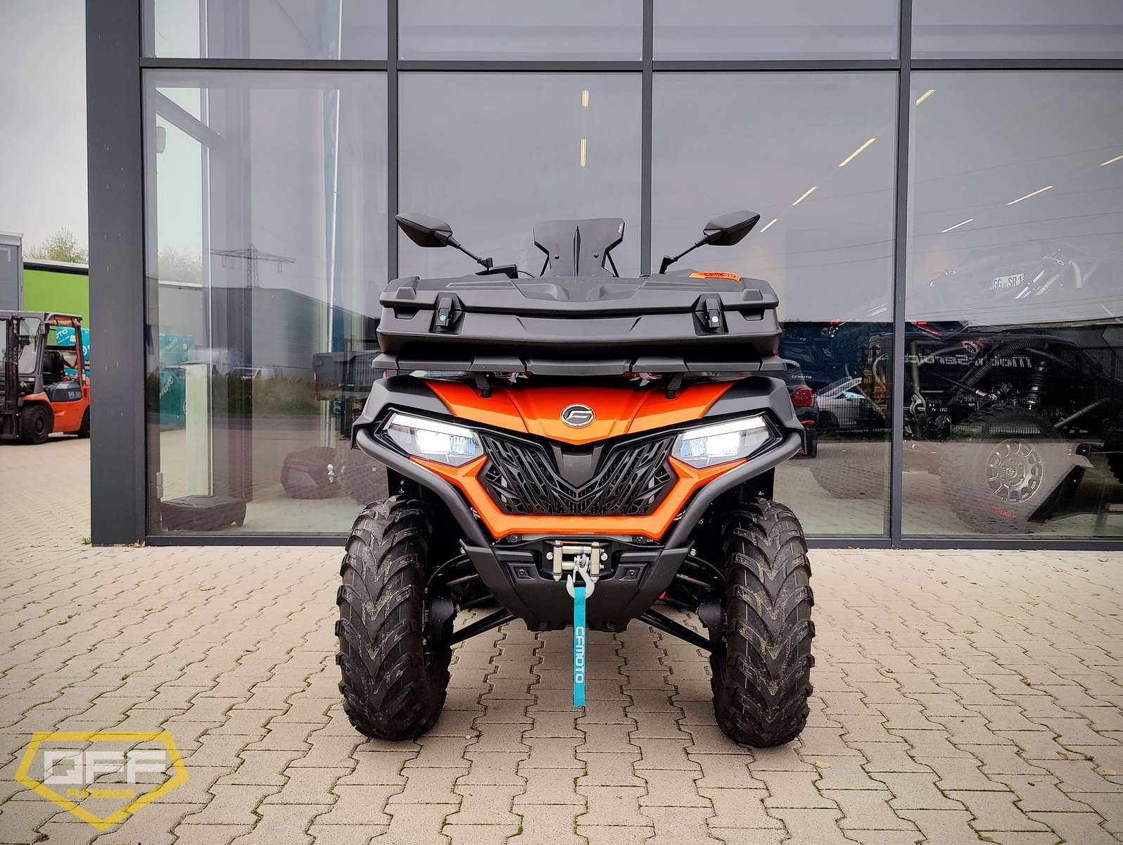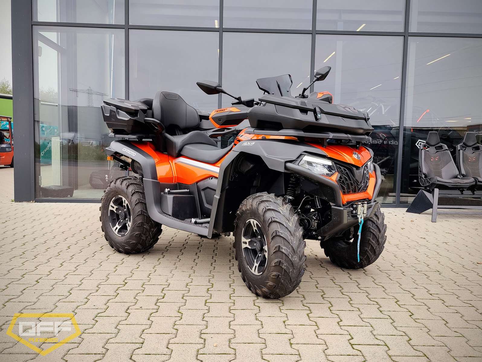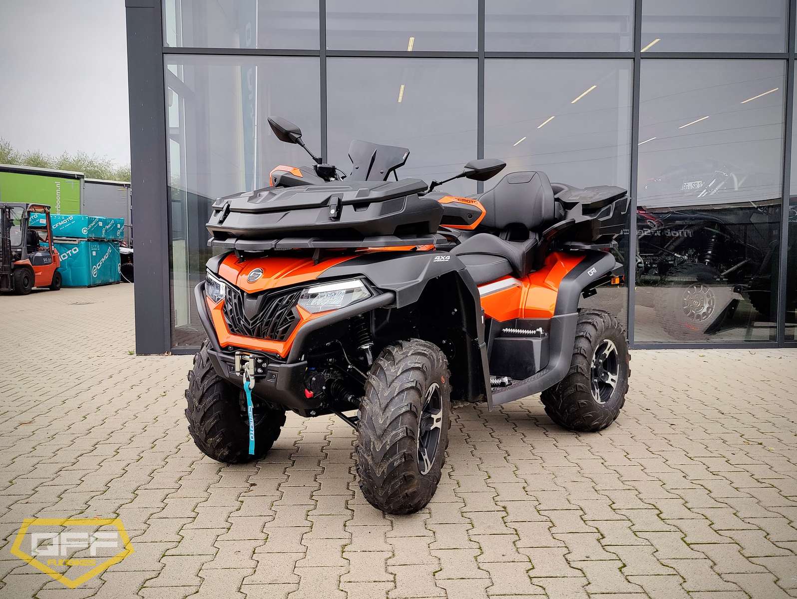 Krachtige viertaktmotor met 42 PK, automatische CVT transmissie met hoge- en lage gearing. Inschakelbaar achter- en voor differentieel en 4WD. Onafhankelijke wielophanging. Voorzien van stuurbekrachtiging. Uitgerust met koffer voor en achter en jerrycan.