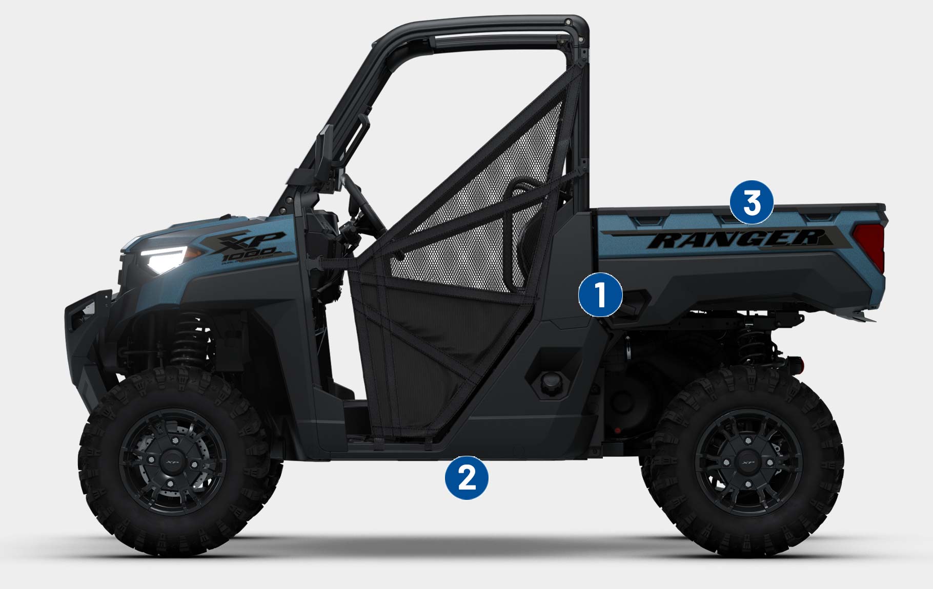 Met een sterk stalen frame, robuuste wielophanging en krasbestendige carrosserie is de Ranger XP 1000 EPS gebouwd om lang mee te gaan, zelfs onder de zwaarste omstandigheden. Het duurzame ontwerp biedt bescherming en betrouwbaarheid, waar je ook naartoe gaat.